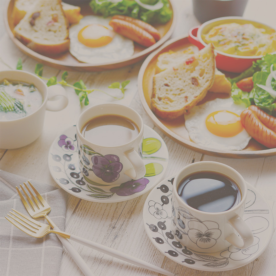 ・使用素材 写真素材:ゆっくり朝食で朝の癒しの時間